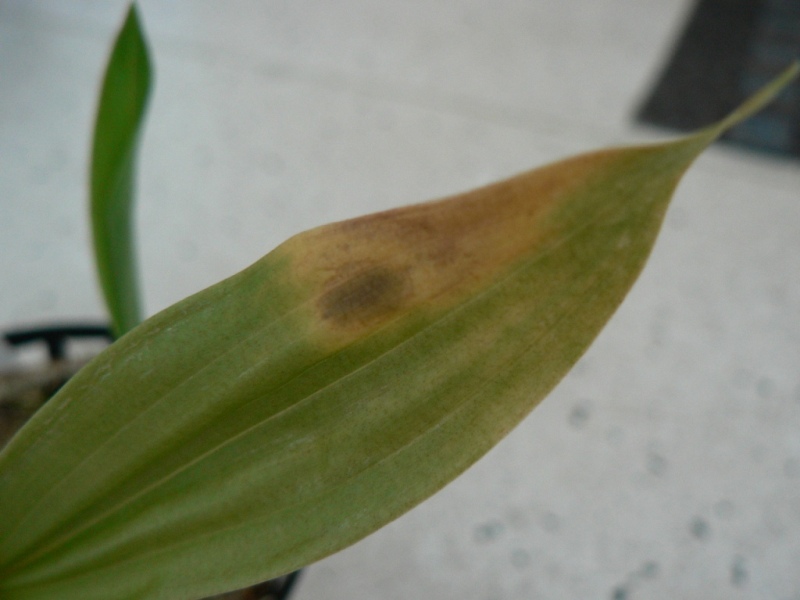 Já ten obrázek dala do jiného vlákna. Teď už mám špičku listu ustřihnutou, aby se to nešířílo, ale zdá se mi, že se tam postupně objevují další žluté flíčky.. Kořeny tam vykukují a vypadají zdravě. Substrát není promočený a pravidelně ho rosím. Zatím mě napadá jen varianta - málo x moc hnojiva nebo málo x moc světla .