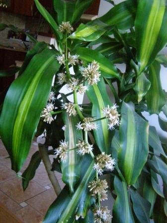Nebudu zakládat nový téma, tak to dám sem. Je to jen pro zajímavost. Vykvetla mi Juka. Před 20 lety mi přivezli kus klacku z Brazílie, který ve vodě pustil kořeny a nový výhony. Je to obří záležitost, která roste hrozně rychle, takže ji neustále ořezávám, rozdávám a snažím se jí udržet v nějaké přijatelné formě. Od té doby co jsem ji seřízla poprvé pravidelně po 2 až 3 letech kvete. Kvetení je, ale velice krátké, protože strašně silně voní, tak jí ho uřezávám, protože by se s ní jinak nedalo v bytě žít.