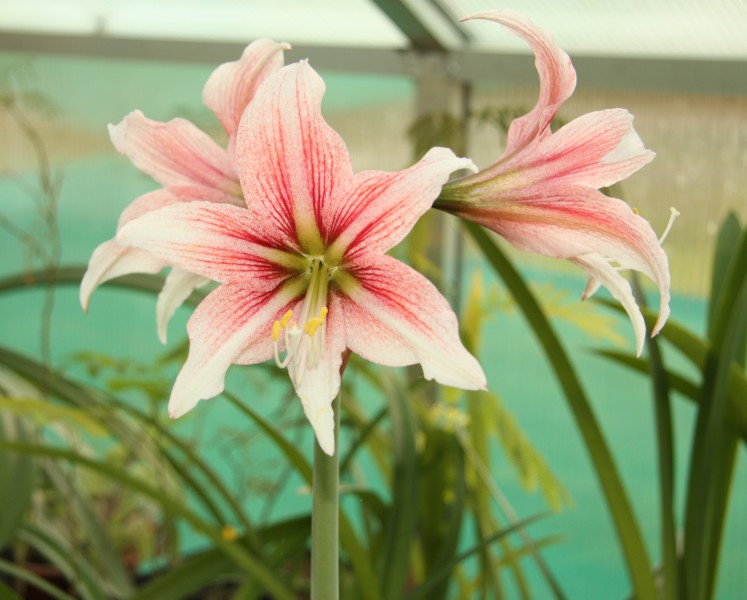 Letní jihoafrické cibule naopak končí vegetaci a začínají kvést, tady Cyrtanthus sanguineus. Květ má průměr asi 10 cm. Z Evropy by tu byl Cyclamen cilicium (od už představených C. hederifolium a C. graecum se liší chyběním "oušek" na bázi korunních lístků), Jižní Ameriku zastupuje hybrid Hippeastrum 'Sweet Lilian'. T.