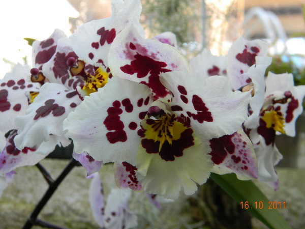 přidávám dvě dendrobia - jedno klasický hybrid, druhé, velmi podobné Marie Nöel (to se u mě teprve chystá). Toto je registrovaný hybrid Den. Cassiope (D.nobile x D. moniliforme). oblíbený hybrid Odontogossum a dvě Vandy.