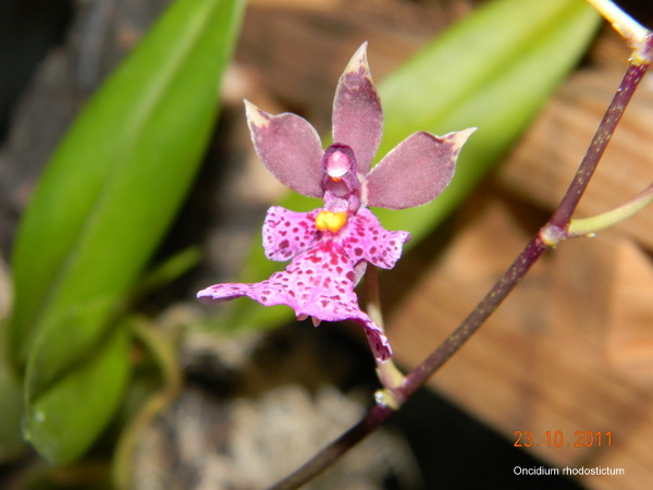 Rozkvetlo příbuzné Oncidium nubigenum. Na pěstování stejná potvora jako phalaenopsis. V loňských vedrech se na listech čerstvě vyvázané rostliny udělaly černé skvrny. Zapěstované Onc. phalaenopsis je přežilo bez úhony.