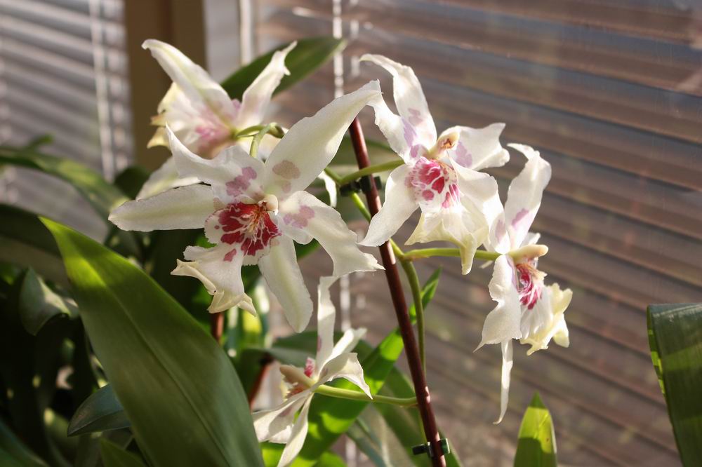 tak mi rozkvetlo další hybridní Epidendrum získané výměnou  Je to maličký prcek(cca10cm),měl už květní pouzdro v létě,ale přestalo růst až tohle na nové pahlíze se ukázalo.