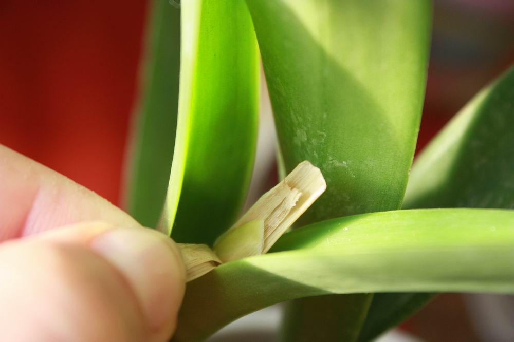 tmavočervená phala a neskutočne ma teší, že nakoniec aj novokúpené odkvitnuté neznáme (pravdepodobne Epicattleya Plicaoboa asi) budú zrejme obe kvitnúť. Na jednej z nich však jedno púzdro bolo bez pukov. Zožltli, tak som zo zvedavosti do oboch nakukla a v jednom boli púčiky  . Na druhej rastline je púzdro krásne zelené a kvetný stvol už krásne vykukol  Sa neviem dočkať, aké budú, netuším, ani v obchode si nepamätali, normálne vzrúšo
