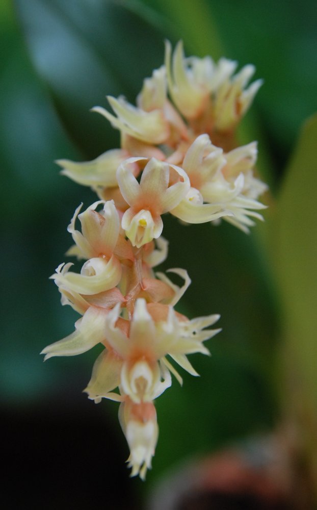 Tak už i Dendrochilum wenzelii kvete. Bohužel se mi květy k sobě přilepily a tak jsou poněkud pochroumané (musel jsem je operativně odlepovat a otevírat). Možná nechce takové teplo, v jakém ho mám.