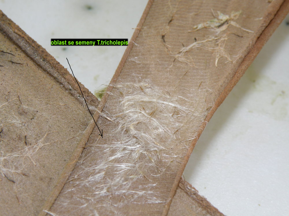 Semena jsem odebíral postupně, jak dozrávaly tobolky (období 20.2.-10.3.) a dnes ráno jsem schválně s bleskem nafotil dotyčné místo (semenáče jsou lépe vidět-zelenají se pod chmýrem). :D