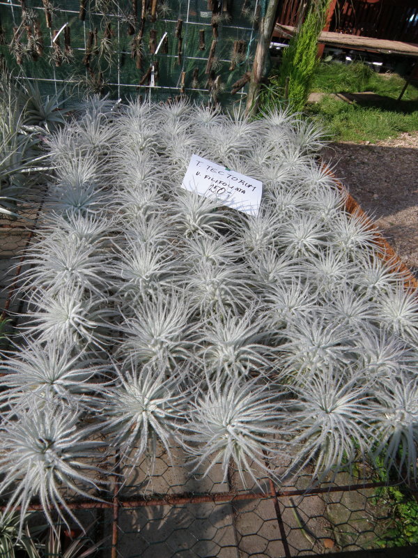 bruk600 ... máte moc hezký epifytní kmínek(kmen)  , je vidět, že se snažíte jim dopřát přirozený způsob života, přestože jde o mnohem náročnější způsob pěstování...tyto kompozice sestavené z různých skupin zástupců epifytů - kapradin, bromelií, kaktusů aj. jsem vždy obdivoval Ty brachycaulos jsou už opravdu pěkně velké hlávky....zasloužily by si zakvést a ukázat tak co dovedou. Rovněž tectorum je v květu naprosto skvostná......trochu to květenství připomíná zkrácené, ale přitom obdobně zbarvené s fialovým nádechem, květenství T.cacticola. Na fotce je T.tectorum nabízená v Chotči v létě 2009, bohužel tehdy jsem si na tuto krásku netroufal ...  , tehdy nabízené rostliny měly určitě minimálně 13-14cm v průměru. Pan Heřtus na kakteen.cz nabízí snad 7 variant této sněhobílé krásky.... http://www.kakteen.cz/index.php?klic=id58cz-volne