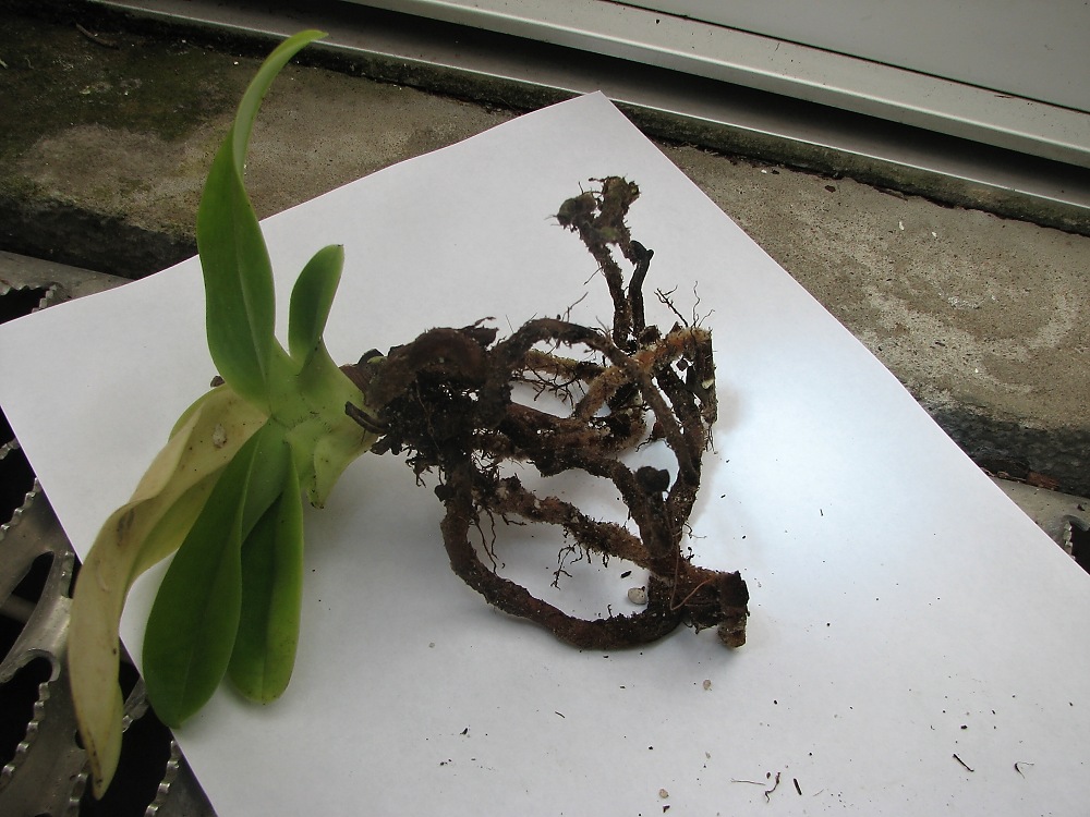 Jen ukážu přesazení-je to moje zkušenost.Určitě neřeknu nic překvapujícího.  Paph.hangianum mám od 24.9.09.Po vyklopení (poslední přesazení 30.8.11)-6smysl mě říkal ,že mám velký květináč nakonec i nerůst pafíčka nic moc .Kořeny docela ok na fotu jsou všechny živé ,ale kořeny které šly ze středu a obtáčely květináč dole nebyly v pořádku.Viz.foto. Jak se dělá dole v květináči řasa je tam občas pěkné bahýnko. Mohlo to být lepší –kořenů špatných pár bylo. Myslím žádná velká tragedie.Takže měním květináč za menší(na dně je č.9) substrát stejný jen hrubší ve spodní části. Kapradiny-no a uvidí se,co mě na to poví příště. Životopis pafíčka http://haki1.rajce.idnes.cz/Paphiopedilum_hangianum/#