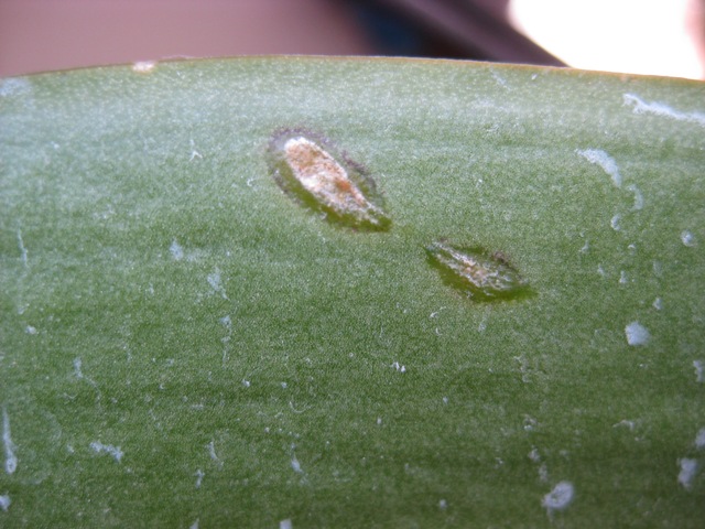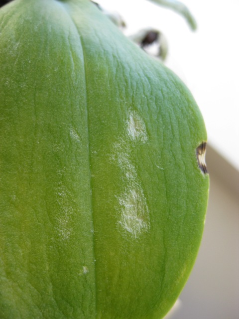 Tak to je teda prekérka, tak teda nevím, co s tím, šnečka jsem na tom nenašla a mechanické poškození to být nemůže, nenapadá mě, od čeho by to bylo, najednou se to tak objevilo a stále se to rozšiřuje, myslím to na obr. 11 a 13  A to kroucení listů se mi taky nelíbí, začalo to ještě u jedné orchideje. Ale listy má v pořádku, kořeny vyhání, kvete. No a co ty šílený chodbičky? Vždyt budou za chvíli skrz
