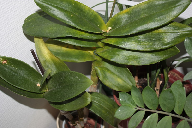 Čo to mám s listami? Trápi ma to na jednom Zygopetalu, 1 Cambrii a 1 Miltonidiu. Je to na týchto troch s jemnejšími listami. Ostatné to chvalabohu nemajú. Môže to byť z vody ? Rosím len substrát a aj to velmi opatrne a snažím sa nepostriekať listy...polievam substrát zvrchu. Mám radšej ponárať ? Navyše to Zygo má na starých hluzách svetlejšie listy a 2 listy som už odstránila, odpadli by aj tak. Avšak tie flaky sa začínajú objavovať aj na nových výhonoch na Zygu.