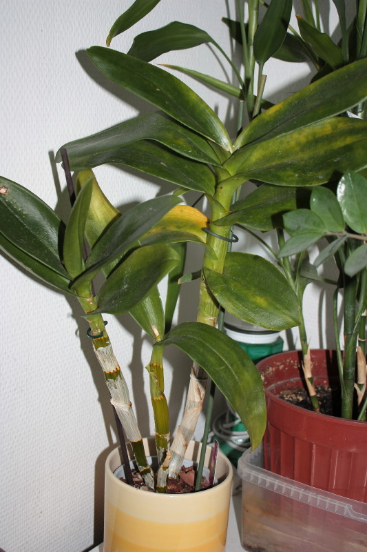 Ahojte, obraciam sa na Vás s prosbou o radu. Na Dendrobiu phaleonopsis sa mi sflakateli listy a je ich čím ďalej tým viac. Obávam sa nejakej bakteriózy, Jedna dendrophala mi už takto odišla pred pár mesiacmi, v lete vyhnala krásny nový výhon, na jeseň na ňom kvitla a potom bác! a šlo to rýchlo, nepomohlo ani presadenie, posmerne rýchlo zožltli a opadali všetky listy....Túto terajšiu som presadila a striekam koloidným striebrom, samozrejme je od ostatných orchidiek izolovaná.....bola celú zimu na okne v obývaku, nebola podchladená, ale pri presádzaní asi pred 2 týždňami som zistila, že korene boli dosť uhnité - vinou nacucnutého rašelliníka...do vyklopenia z kvetináča vyzerala OK, a hned po presadení začala chradnúť. Substrát som dala svoj vzdušný, kôrový. Rozmýšlam, že ju asi vyhodím, spolu s jednou chradnúcou Cambriou, tiež som ju presádzala a korene boli úbohé a jej sa robia tmavé flaky na koncoch listov....už viem, že presádzanie nebudem odkladať na neurčito, ale každý kus presadím hned po kúpe....poradte čo s tým