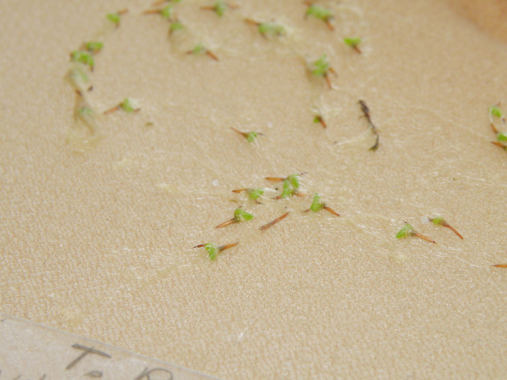 Výsevy se mají čile k světu  jsou to miniaturní dokonalé výtvory přírody...chtěl bych jednou mít možnost sledovat takto vývoj a růst protokormů orchidejí. Co mne trochu trápí, je řasa, která by mohla být jistým problémkem pokud by pokryla semenáčkům jejich životodárné šupinky, ale co naplat když tyto rostlinky jsou dětmi vzduchu a slunce a tudíž tak světlomilné.