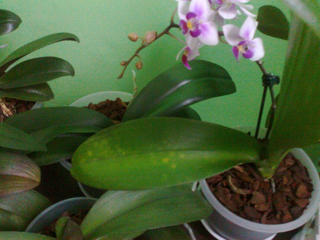 Pridám sem aj ja to moje momentálne trápenie, foto nič moc, ale hádam tie bodky bude vidieť, jeden phal má také všetky losty a jeden má iba nový, ešte rastúci lístoček...neviem, čo to je...prosím, poraďte čo s tým