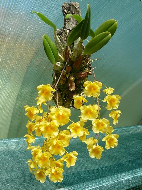 právě kvete jeden prcek Scaphyglottis sp. ,pidi oddělek asi 6 pahlízek(ty mají cca 2cm) koupený před měsícem  ,
