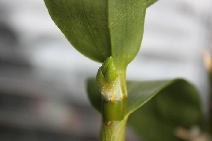 Pahluzy dozrete su. Horne listky stoja vodorovne, su dorastene. Rastlina ma 5 pahluz, dalsie 3 jej rastu a predtym kvitla urcite, lebo mala na sebe zaschnute casti kvetnych stoniek.