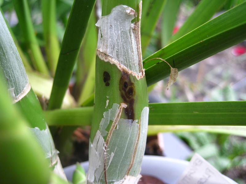 8majuska no nevypadá to moc přívětivě. U té první fotky bych řekl, že to jen houba kde zůstala voda za listenem kryjící pahlízu a tam to obyčejně zahnije . Nenamáčelas někdy v minulosti všechny rostliny v jednom kbelíku? U některých to vypadá na virózu. Samozřejmě je to jen odhad. U té Masdeválky ta chce hodně vzdušné vlhkosti a letnění nebude to pravé.