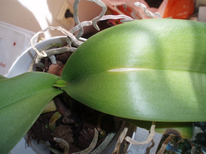 Mohla bych poprosit o určení těchto problémů s listy. Jde-li jen o problémy se sluníčkem a nebo, což doufám, že ne, o nějakou nemoc. Kytky vypadají dobře, rostou tedy hodně pomalu. Kořeny mají zelené a i na koncích je vidět, že se tvoří nové. Moc děkuji za případnou radu, jsem začátečník a v mém okolí nikdo orchideje nepěstuje, tak se nemám s kým poradit.