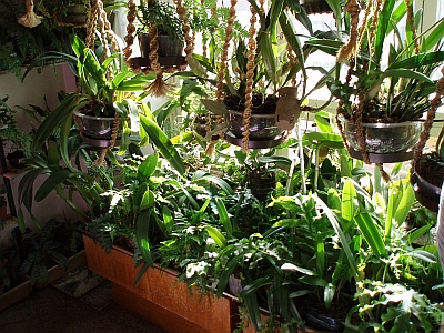 Pokud ses Pavle ptal na návštěvu u Paphia, byla velmi zajímavá a poučná. Rostliny má rozděleny do dvou místností, v jedné má pouze mladé rostliny a tam používá k osvětlení 2 výbojky (watáž neznám) a to cca 1,6 m od rostlin. Po stranách má ještě klasické dvojzářivky - trubice s modrou barvou spektra. V pokoji, kam je soustředěna sbírka, používá pouze zářivky. Dost mne překvapil velký odstup zářivek od rostlin. i více jak 1-1,5 m! Celá okenní stěna orientovaná k jihu je rostlinami v závěsech a na policích beze zbytku naplněna. Po stranách má ještě krátké police rovněž plné rostlin. Zajímavé bylo použití misek, místo klasických květináčů. Misky většího průměru a poměrně nízké. Substrát na můj vkus příliš jemný, ale o jeho kvalitě se nedá pochybovat, stejně tak i o vědomostech a zkušenostech majitele.