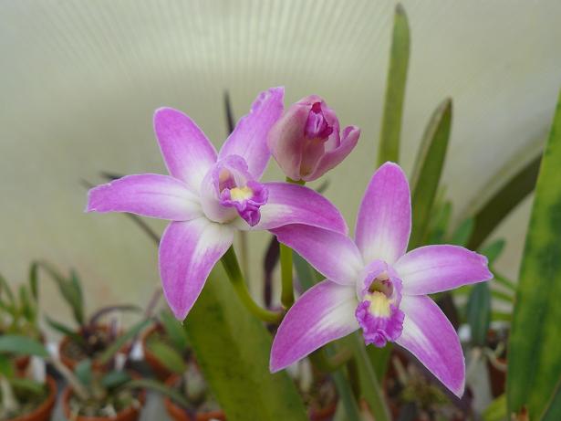 Rozkvetla další z rupikolních lélijí - Laelia rupestris. Je to impozantní rostlina s největším výhonem 40cm velkým (je to asi největší rupikola). Na srovnávací fotografii je zprava nakvétající L. caulescens a vlevo L. liliputana (nejmenší rupikola). Květy jsou v porovnání s rostlinou celkem malé (4,5 x 4,5cm), ale zato pěkně vybarvené. Jako všechny rupikoly pochází z Brazilie (Minas Gerais, Bahia), kde roste ve výšce 400 - 800 metrů. Patří k monzunovým lélijím.