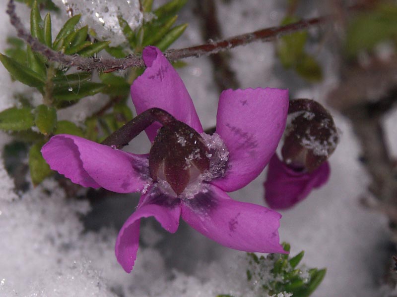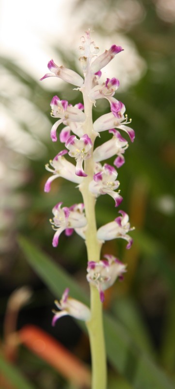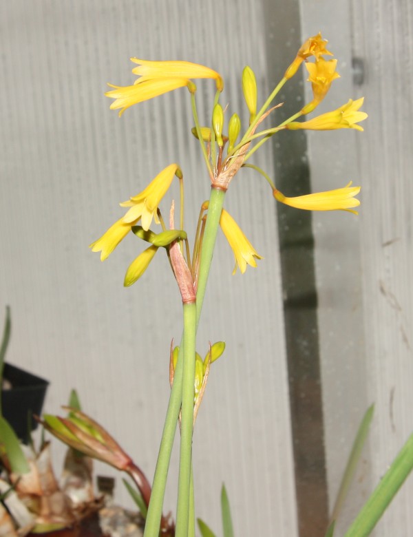 No Karle, to je tedy otužilé coum  .  Jižní Afrika: opět kvete Cyrtanthus flavus, letos udělal tři stvoly a slimáky se mi podařilo zatím udržet v uctivé vzdálenosti (ťuk ťuk). Pokud se podíváte na fotku pořádně a porovnáte ji s loňskou o pár stránek zpět, uvidíte na obou vzadu nasazené květenství na dalším druhu, C. eucallus. Ten vloni taky kvetl, ale nějak jsem nestačil udělat obrázek, tak snad letos. Z obou fotek je vidět, že tyhle rostliny mají poměrně přesný jízdní řád; letos sice kvetou nebo raší zhruba o 14 dní později, ale vzájemně stejně posunuté. C. flavus se mi vloni nepovedlo opylit vlastním pylem, kytka je asi autosterilní (= cizosprašná), a tak se budu muset poohlédnout po nějakém jiném jedinci, jinak se semen nedočkám... Potom následují další lachenálie, ale jsou to trochu "mrňky", takže fotky nic moc (jsou jen pro základní orientaci, jak co kvete a také, co už kvete). Na obrázcích L. kliprandensis je vidět určitá variabilita - to je častý bonus při výsevu přírodních semen; pokud je semenáčů větší série, mohou se objevit různé zajímavé varianty. Proto radši vysévám stovkové porce, abych nějakou variabilitu zachytil  . Jihoafrické rostliny pro dnešek uzavírám kytkou, která tu už byla, ale nemohu si pomoci: tuhle hybridní frézii mám moc rád. Vloni jsem psal o nutném roztřídění oddenků, které jsem koupil jako směs barev - nakonec nebylo moc co třídit, vyrostla jedna červená, jedna bílá, jedna fialová a asi padesát žlutých  . Protože jsem měl hlízky nasázené v květináčcích po jedné, stačilo zapíchat jmenovky. Na fréziích je příjemné, že se velmi rychle množí, z jedné hlízky je po sezóně trojice nebo i pětice slušných, které pokvetou. Takže místo jednoho stvolu červených budu mít stvolů šest, podobně to bude u bílých. Jen u fialové ne - na podzim před rašením ji v květináčku vyhrabala myš a sežrala skoro celou hlízku, zůstal jen kousek spodku; naštěstí vyrašily dva spící pupeny a tak snad budu moci příští rok dát fotku tmavě fialové frézie... Tyhle kytky mají jeden nešvar: musí se vyvazovat k bambusové tyčce, jinak se trs listů nepěkně válí po sousedních hrncích a květní stvoly jsou šíleně zkroucené (ve velkokulturách určených k produkci řezaných květů se to řeší několika patry horizontálně napjatých řídkých sítí). Protože jsem chtěl vidět, jak vypadají divocí předci hybridních frézií, objednal jsem semena několika původních druhů a celkem slušně to vyklíčilo, tak snad v dohledné době budou i květy botanických druhů. T.