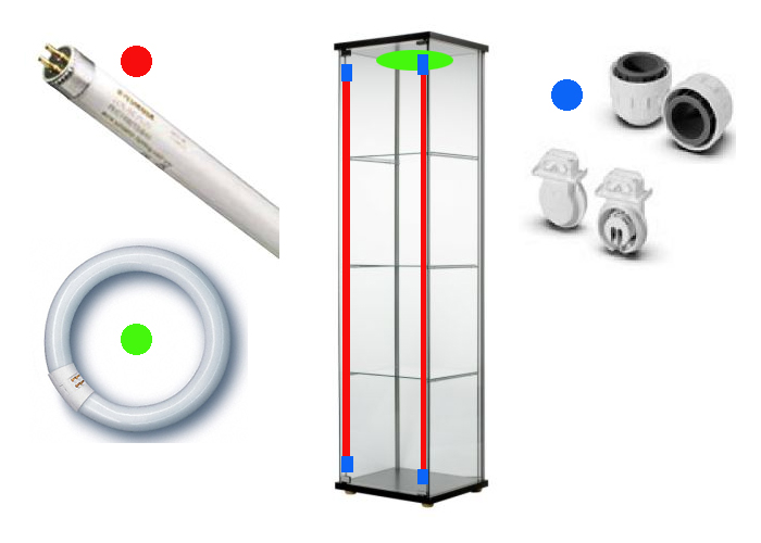 Dobrý den, mám dilema s osvětlením, mám vitrínu šířka: 43 cm, hloubka: 37 cm, výška: 163 cm (Je úzká a vysoká protože mám nedostatek místa v bytě) a chtěl bych tam pěstovat nějaké jednoduší orchideje a možná i bromélie, podle nákresu níže uvidíte jak jsem vymyslel osvětlení (doufám že to pujde zrealizovat  ). A teď k otázce: chtěl bych u přední strany v rohách dvě zářivkové trubice T5 146cm dlouhé a nevím v jaké vatáži mám vybrat. Na výběr mám 35, 49 a 80W (chtěl bych zohlednit hloubku vitríny 37cm a cca mínus 10-15cm bude zadní stěna s vestavěnými květináči pokrytá lignocelem a kůrou). Pak mám ještě na výběr chromatičnost zářivek 830, 840, 865 (tomu moc nerozumím). K zářivkám bych použil vodotěsná patice G5. Na nákresu mám zakreslený zeleně kruhovou zářivku a nevím jestli bude vůbec za potřebí (22 nebo 32W). K ventilaci vitríny bych udělal do stropní stěny otvor, ale nevím zda postačí mřížka nebo budu muset použít třeba PC větráček (okolo předních dveří je cca 0,5cm mezera). Předem děkuji za vaše rady a typy.