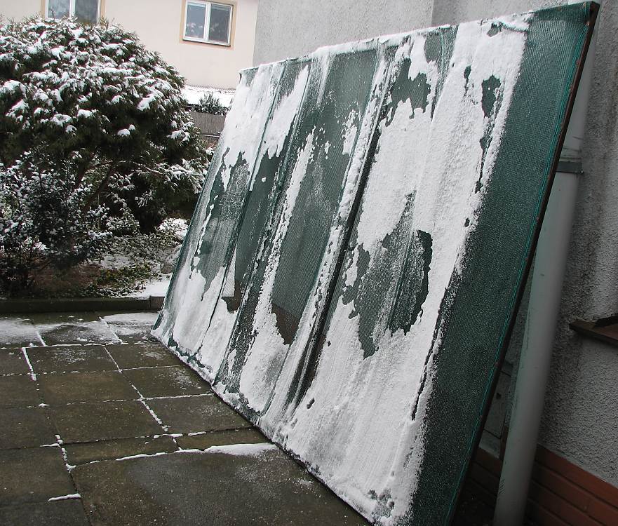 Moje právě sundaná stínovka ze zimní zahrady  A začíná opět sněžit i když přímo v HK žádná sněhová kalamita není -už je to otravné a stále na jedno brďo