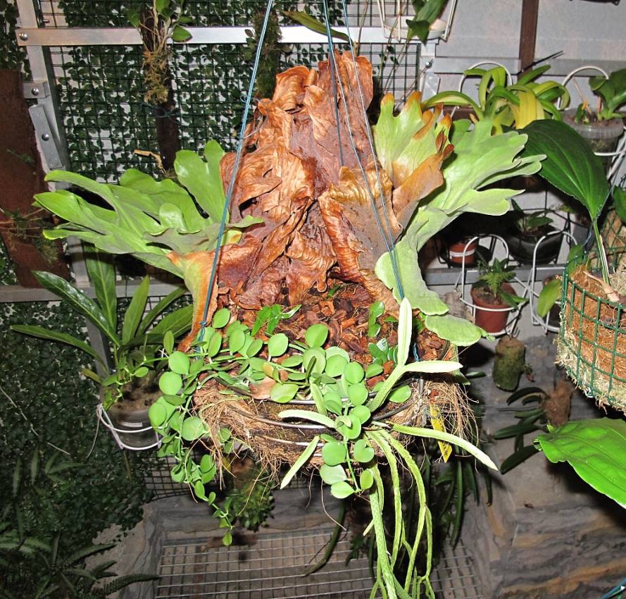 AHA ono to na fotu není vidět tak ještě dvě potemnělá fota pošlu.Ten jakoby sběrač vody a v přírodě i různých druhů hnojiva už máme.Nevím jak s vlhkostí v bytě.Jinak pokles zimní má u mě k 13-14°C. JEŠTĚ se vracím myšleno "uvnitř" bylo jako v košíku na kterém je navázaná.Jo měla jsem tam různý velký kapradiny ,ale ty jsem zrušila a teď jsou tam malý kapradiny
