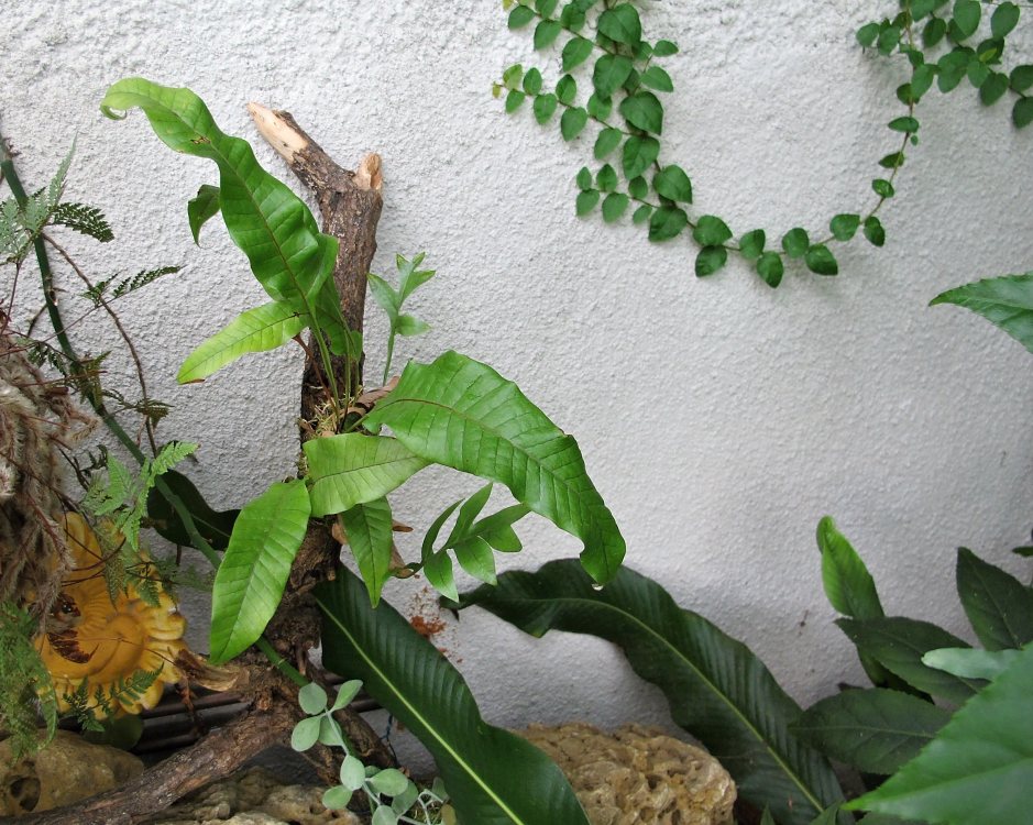 Já mám východní stranu k večeru jižní .Pokusím se odpovědět asi tu nikdo zz na jižní stranu nemá nebo je okurková sezona.  Teplota se ti asi daří zajistit venkovními žaluziemi nemám moc přehled jak to bude se světlem . K těm doplňkovým rostlinám určitě tilandsie některý se mě i líbí.To co mám já v zz je Rhipsalis je to epifytní kaktus dávám foto -kus jsem prostě strčila do otvoru v akátu a roste.Připouštím nemusí se všem líbit, mám ještě dva druhy,vydrží hodně.Na fotce ty fialový bobulky to je Anthurium scandens var.pumila je to plazivec. Moc jsem si nebyla jistá z umístěním rostliny tak má kořeny na obrácené straně akátu kde jsou ve stínu a roste plazí se do slunka. Mám tam i světlomilnější orchideje je to moje nejsvětlejší místo v zz. Anthurium dávám jako příklad že to jde různě. Možná by i víc slunka vydržely některý Dischidie -foto. Jsou umístěný nahoře v zz kde na ně svítí přímo jižní odpolední slunko. Peperomie myslím taky možná jen ty drobný růstem. Když si člověk v klidu vypozoruje jak jde slunko a jak svítí na ten tvůj kmen -určitě to nějak půjde .Taky se musí připočíst klimatizace kterou asi ještě máte a vlhkost pak i ty kapradiny různý by tam mohly růst. Je jich dost druhů mě se libí Pyrosie docela mě v zz divočí Monstera dubia líbí se mě Marcgravie , Lecanopteris nejsou snad všechny stejně náročný.Chce to odzkoušet každýmu to půjde trochu jinak a nejde to přesně říci o všem ,že bude růst uspěšně. Jen jsem nenašla fotku kmenu -asi je to tedy něco nového?Můžu se podívat?