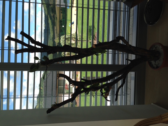Dakujem HAKI, urcite sa po niecom poohliadnem. nemam kvlaitnu foto kmena, lebo je to vzdy proti svetlu. vecer pri umelom osvetleni zase nic moc. este nema svoj kvetinac - obal, na ktory stale cakam. je to orgovan (serik) - pacia sa mi tie rozvetvene konare. otec ma presvedcil, aj ked som chcela agat, a aj ho stale hladam. len som este nenasla taky, ktory by pekne vyzeral. zatial tam mam biedne osadenstvo a preto mam v plane naviazat aj ine rastlinky zatial, kym sa mi podari kupit vsetky orchideje, po ktorych mi srdce pisti  cattleya walkeriana tam ide perfektne, sophronitis cernua tiez. mam tam este trias oblonga a trichotosia dasyphylla, ktora sa zacina pekne splhat. z nemecka mi poslali ako ospravedlnenie za meskanie jeden phalaenopsis corningiana, ktory som tiez naviazala, ale vobec sa mu nedari, takze bude putovat naspat do kvetinaca. rozmyslam este nad nejakou nie velkou cattleyou, ktora by sa mi tam hodila. sophronitis brevipeduculata a wittigiana, mozno laelia pumila. aj ked sa snazim vela citat, este nie som tak zorientovana, ako by som chcela. v kazdom pripade potrebujem teplomilne rastlinky. v zime mam v zimnej podstatne teplejsie ako v lete. slnko je nizsie a hrozne pali dnu. takze musim kazdy den pritahovat zaluzky. raz sa mi stalo, ze bol slnecny januarovy den, ale fukal hrozny vietor a musela som zaluzie vytiahnut, tak mi teplota skocila na 37C. inak tie zaluzie mi to drzia na takych 24-25 v zime a v lete tiez tak, akurat nemusim priklapat. manzel mi tam dal aj klimu, no nevyuzivam to. lebo na tie teplomilne sa mi vidi teplota ok. ked si on chladi obyvacku, zimnu si zavriem a teplota sa drzi. (foto kmena mi stale otaca, aj ked mi to na PC ukazuje normalne, tak pardon)