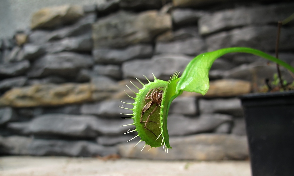 Aáá...jako že přežírání škodí  njn vysvětli mu to.Ale mám ještě jednu lapačku to je ten Nepenthes pamatuješ jak byl uplně pokroucenej a červenej ze začátku.Teď je v rohu zz a zabarikádovanej parožnatkama -sluníčko prostě neneee ale přežil u mě i zimu 13-14°C to může být krátce noční pokles u té zdi.