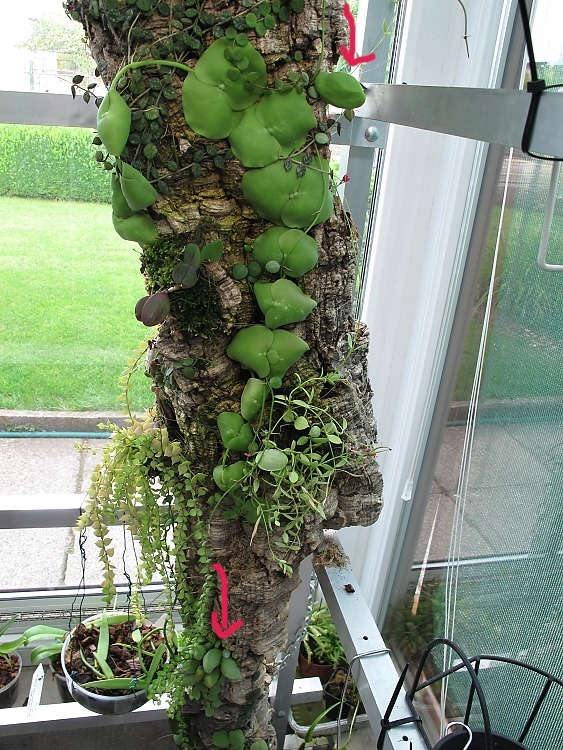 Ještě jednu pitominu .Už jsem to tu jednou psala .Můj korkovník je obydlený jen z jedné strany. Poroste také něco z druhé strany? U mě je to na východní stranu těsně u skla.Korkovník je v rohu kde až takový palermo není .Dischidie imbricata(která se sama cpe na druhou stranu korkovníku) to ještě nevzdala jeden zaklad listu uschl ale kořeny drží .Je vidět že poroste dál no a já jsem na to zvědavá …na efekt by to bylo z rosením by nebyl problém .