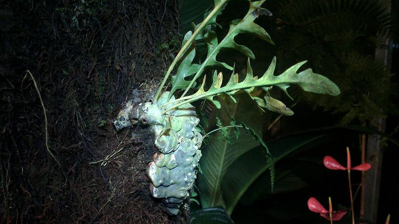 garnet píše: HAKI píše: garnet píše: Po nákupu v Drážďanech jsem ji rozdělil na 3 kusy a každou dal jinam, abych věděl kde má šanci vydržet... JEŠTĚ se vrátím k tomuto  tak jak je u tebe ?U mě začal trochu růst z obou stran.Snad už si zvyknul Lecanopteris je navázaný na kůře umístěn těsně nad roštěm tedy nad sklepem. Stále žijou, ale nijak extra rychle nerostou. Kupodivu se nejvíc daří kousku, který je na nejstinějším místě , asi metr nad zemí, tzn na relativně chladném místě ve skleníku. Možná proto, že má nejvíc trvalé vlhkosti. Jsou na kmenech kapradin. Zkusín nafotit, jak jsem slíbil. Tak tady je pár obrázků ode mě, jak jsem slíbil. Foceno při baterce v noci,omlouvám se za kvalitu.