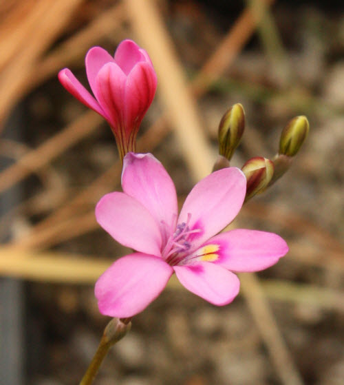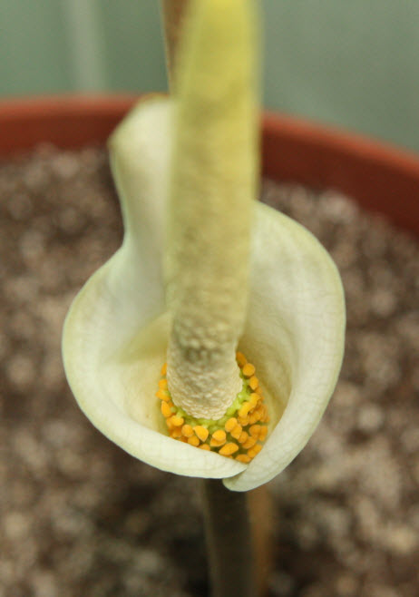 lipo: Jo jo, Ian Young je známý pěstitel... Ve Skotsku znám pod zkratkou BD, což znamená Bulb Despot  ("bulb" v tomto případě neznamená "žárovka"  ). Já mám zas pár drobností na ukázání. Na prvním obrázku drobounká botanická Freesia verrucosa - kvítek má průměr kolem jednoho centimetru. Rozkvetla třetí rok po výsevu, stejně jako F. alba, kterou jsem ale vyfotit nestihl. Potom nějaké fotky malinkého zmijovce Amorphophallus ongsakulii, objeveného Alanem Gallowayem v červenci 2004 v Laosu. Na rozdíl od mnoha jiných drobných zmijovců má velmi jemně "stříhanou" čepel listů, sestávající ze spousty drobných úkrojků, a vypadá velmi dekorativně. Centimetrová hlíza je dospělá a může kvést - tenhle druh kvete zároveň s listem, což je typický znak právě pro drobné druhy z JV Asie. Na obrázcích kytka vyrostlá z "obří" hlízy o průměru 15 mm, která vyrašila dvěma listy a momentálně tvoří dvě květenství. Na posledních dvou obrázcích kvetoucí jávský zmijovec Amorphophallus variabilis, jeden z nejdříve popsaných (popis zařídil Blume v roce 1837). T.