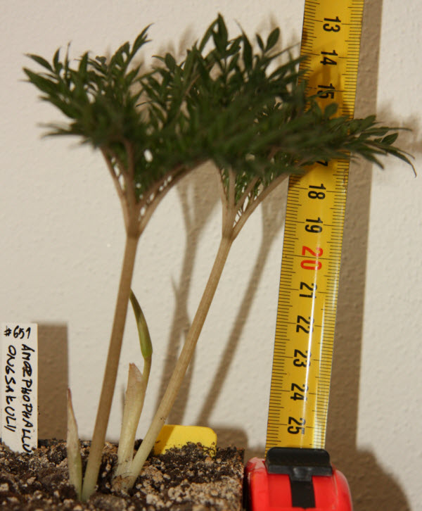 Karlos má pravdu, tyhle malé druhy se množí rychle. A. pulchellus udělal na centimetrové hlízce 10 offsetů, A. myosuroides mívá kolem 5 - 7; ale blbě se to hledá v zemině, u toho druhého jmenovaného mají dceřinné hlízky kolem dvou tří milimetrů v průměru. Dělám to teď tak, že opatrně odpreparuju zeminu z horní třetiny květináče, vyberu, co zahlídnu, a starou zeminu znovu vrátím do hrnku a nechám na jaře znovu vyrašit to, co jsem přehlídl. A. ongsakuli mi přišly jako offsety velikosti menšího pšeničného zrnka... Ale zase se jich na parapet vejde víc druhů, a taky nesmrdí jako ty velké (ten A. variabilis páchnul příšerně, naštěstí jen jeden den. Tchoř je proti tomu navoněnej frajer  ). T.