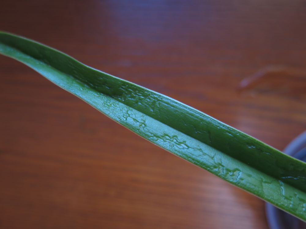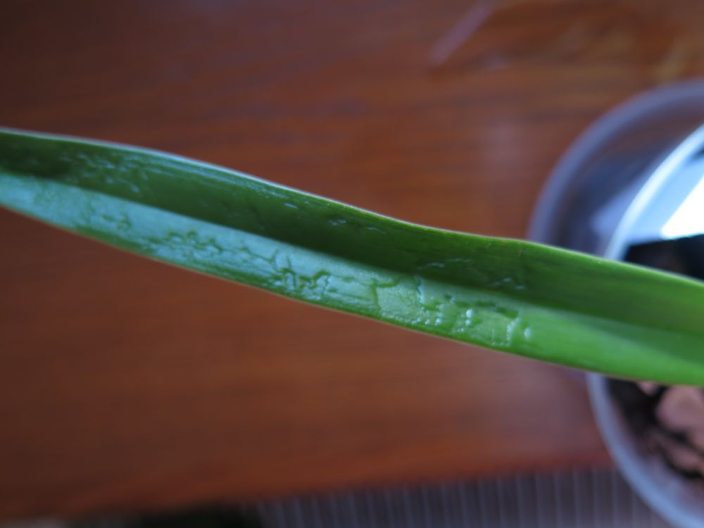 Nedávno zakoupené phragmipedium caudatum - toto se šíří po listech. Nejdřív jsem myslela, že chce víc vody, pak jsem při bližším ohledání začala podezřívat nějaké zvíře. Žádné ale nevidím, ani pavučinky. Je v karanténě, prolila jsem ho Substral Careo. Máte nějaký nápad, co s tím?