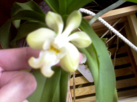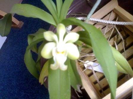 vanda denisoniana, jen jeden kvítek, ale nádherně voní a klube se další výhoneček, tak snad se zadaří a bude květů víc
