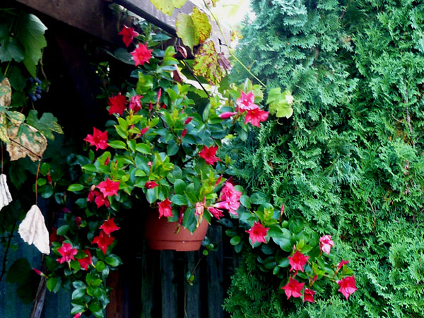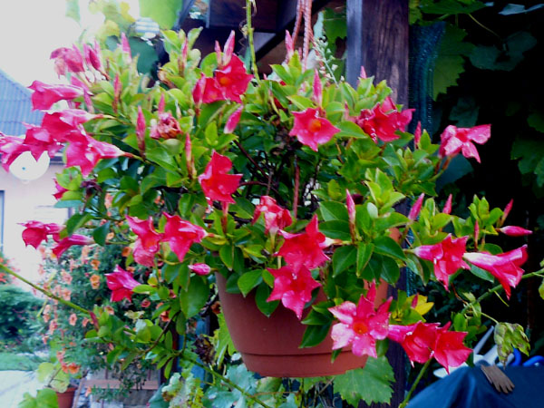 Mandevily jsou nádherné. Žena se do nich zbláznila. Před 4 lety jsme jednu koupili a namnožily. Jsou už staré 4 a 3 roky. Letos si nařízkovala ještě dvě ale ty jsou teď tak 20cm vysoké a začínají mít poupata. Zimují se velice dobře díky skleníku. Mírně je sestřihnu a dám ke sklu do teploty 12-13°C a méně zalévám. I tak se potvory rozlézají. Na jaře opět zastřihnu šlahouny,přesadím a dobře pohnojím. I u nás měli jiné barvy a to žlutou, růžovou a bílou. To jsem ale smlčel, protože bych je určitě musel koupit a za chvíli bych mohl vystěhovat orchideje, protože by se tam Mandevily už asi nevešly. Řízkoval jsem je i pro rodinu a jen jednomu se je podařilo přezimovat v bytě ale jen první rok. Ostatním to vždy na zimu zašlo.