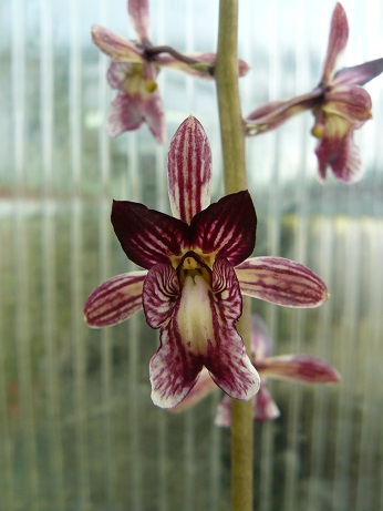 Přidám vlhkomilný a stínomilný Oeceoclades saundersiana, který roste v lesích rovníkové Afriky ve výšce kolem 1200 metrů. Rostlina měří s květenstvím téměř jeden metr a květy 3,5 x 3,5cm.