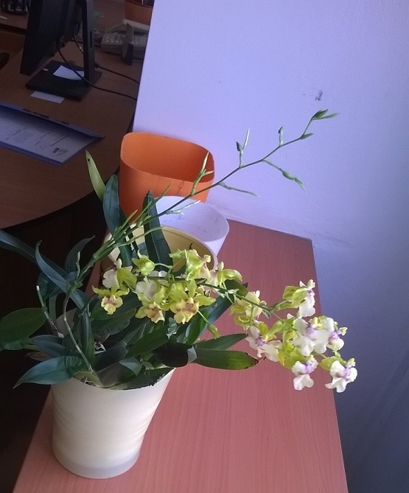 Dnes som videl v jednom super-hyper markete orchidej, ktorú neviem identifikovať. Zatim som nekupoval, lebo neviem, či mám pre ňu vhodné podmienky. Mohlo by to byť nejaké dendrobium (tipujem podľa pahľúz)? Výška cca 20 - 25 cm.
