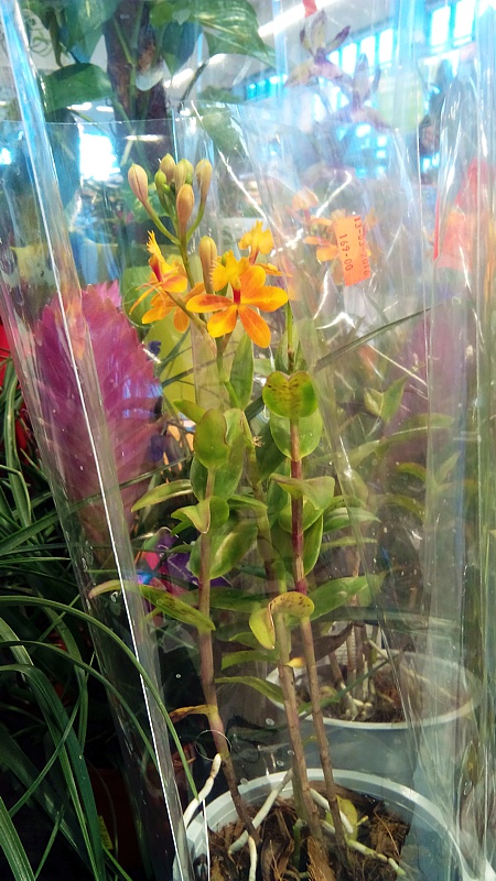 cheron píše: Dnes som videl v jednom super-hyper markete orchidej, ktorú neviem identifikovať. Zatim som nekupoval, lebo neviem, či mám pre ňu vhodné podmienky. Mohlo by to byť nejaké dendrobium (tipujem podľa pahľúz)? Výška cca 20 - 25 cm. To je Epidendrum.....hybrid.