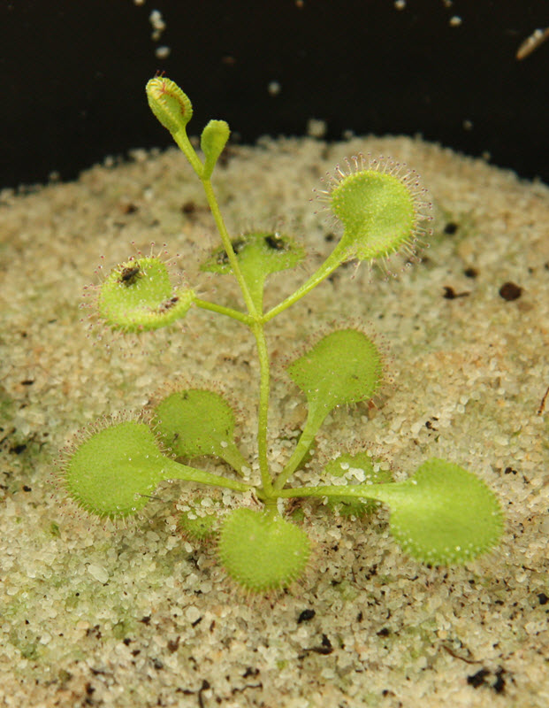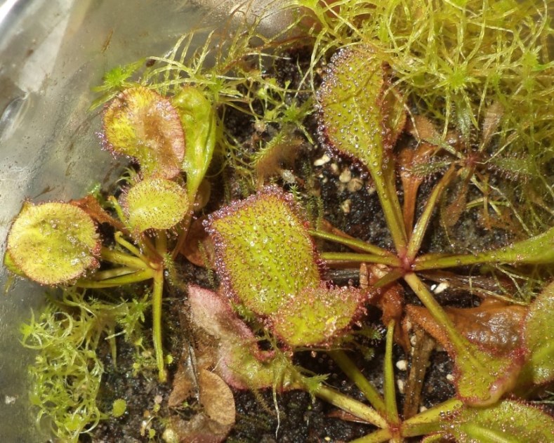 Už dlouho mne lákaly hlíznatí příslušníci rodu Drosera. Vloni na podzim jsem padl na docela bohatou a cenově dostupnou nabídku na jednom německém webu a "zopár" položek jsem si koupil. Došlé hlízky byly rozmanité velikosti, bez známek jakéhokoli seschnutí, pro moje laické oko prostě kvalitní. Nasázel jsem, zalil, čekal... Rašení přišlo poměrně pozdě, ale vyrašilo úplně všechno až asi na dvě nebo tři hlízky. Momentálně se trochu potýkám s botrytidou, ale snad to zvládneme  . Květy asi letos nebudou, na to byly hlízky přeci jen dost malé, ale i tak jsem nadšen. Jen to bude chtít trochu víc světla, letos jsou rostlinky bledší, než by měly být. Ale vypadá to, že můj skleník s "mediterráním chodem klimatu" je pro pěstování celkem vhodný, tak snad se mi podaří pokračovat i v příštích sezónách. Malá ochutnávka dole. T.
