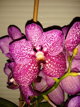 Ahojky všichni, tak mi vandička rozkvetla. Má dva stonky. Na jednom má 5 a na druhém 7 květů a vypadá úžasně. Přikládám foto. Příloha: