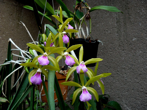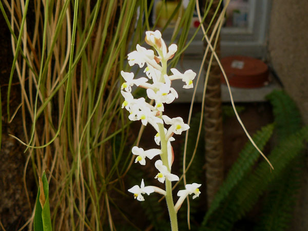 Rodriguezia lanceolata - kvete v podivnou dobu a po nájezdu svilušek v létě vypadá poněkud unaveně. Ale snad se to příští sezonu zlepší