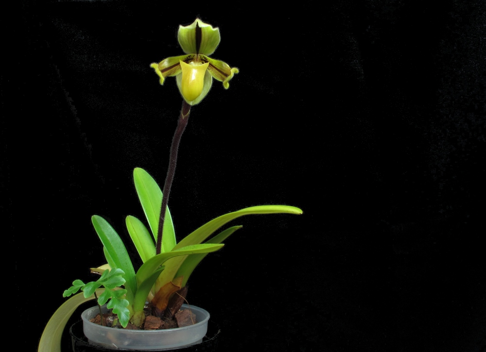 Haki: Na výstavě v Chotči jsem si na Tebe vzpomněl, když jsem kupoval rostlinu Paphiopedilum acmodontum. Rostlina mne zaujala barvou květu na přiložené fotografii a také strakatými listy. Tak jsem si řekl, že si ho pořídím. Do té doby jsem nevěděl, že nějaké acmodontum vůbec existuje. Proč to ale píši: Botanické orchideje tam měli na plném slunci a ta pafíčka měla takové nažloutlé listy. Říkal jsem si, že to asi bude takový žlutozelený druh. Doma jsem ale koukal na Google a tam je většina rostlin zelenějších a tak mne napadlo, jestli to není také z nadměrného osvětlení. Posílám foto.