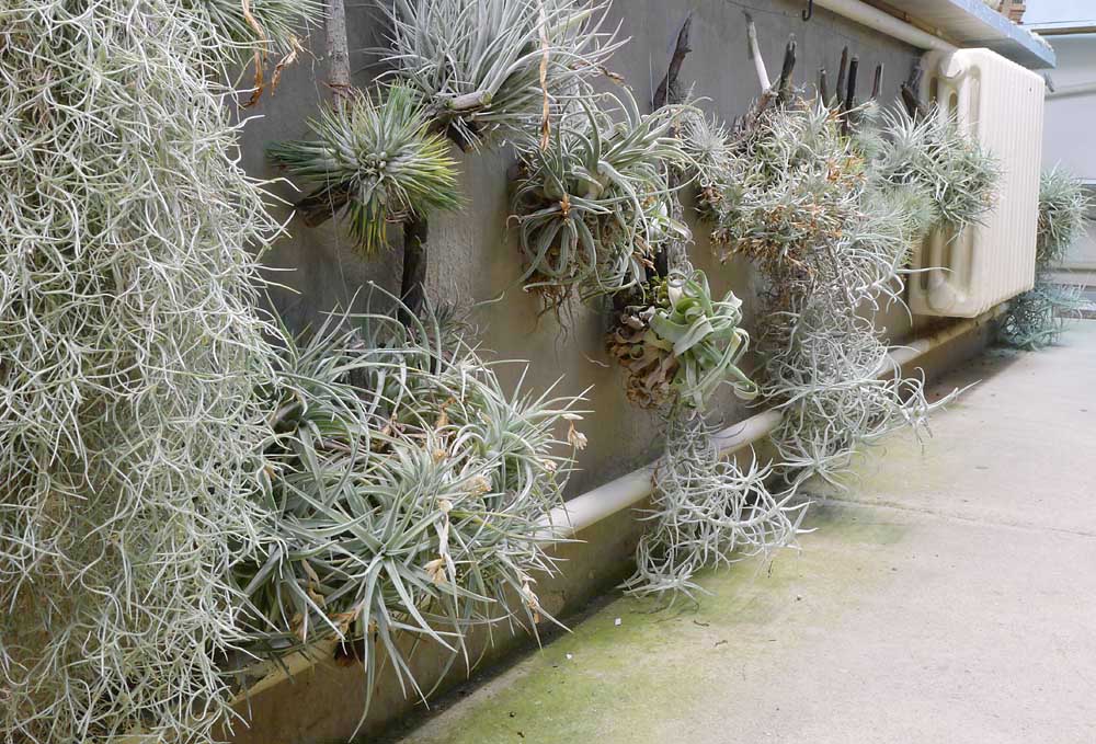 Tillandsií mám asi 100 rostlin, těch stříbřitých v uličce kaktusového skleníku. Zelené tam nevydržely ale stříbřité jdou dobře. Některé jsou už veliké trsy. Přes celé zimní období je ani nerosím a přesto vydrží. Chtěl jsem ten prostor nějak smysluplně využít  . V ZZ asi 8 rostlin.