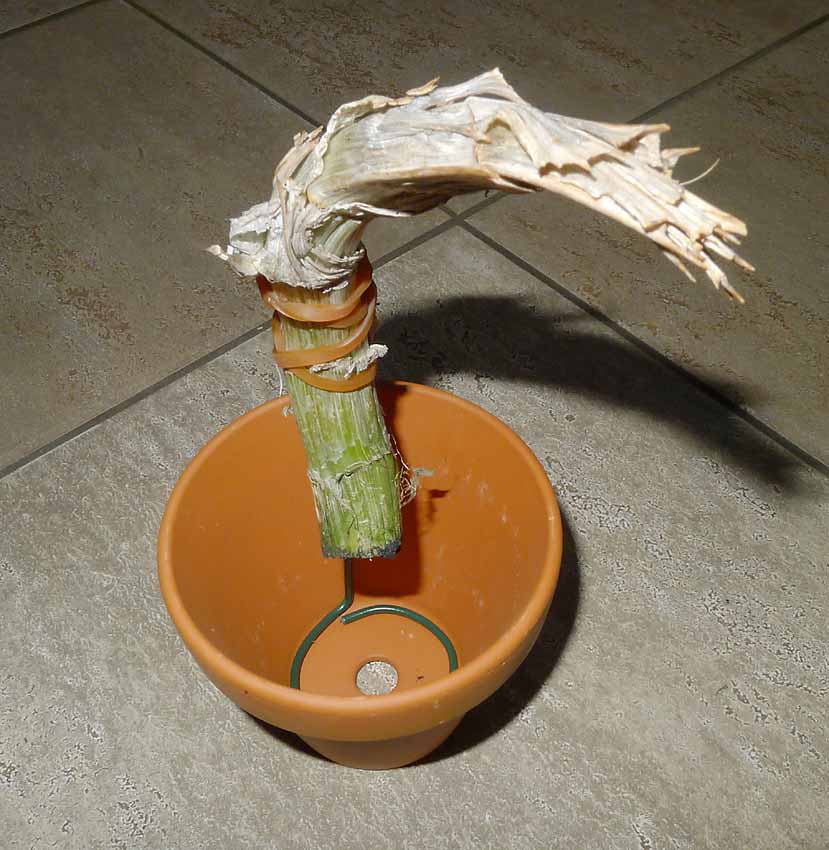 Citace z vlákna Catasetum schmidtianum: No, já bych fakt vodu ještě nedávala. Ten výhonek se uleje. V tomhle stadiu je rozumné přivázat starou pahlízu na klacek a zapíchnout do substrátu tak, aby byla těsně nad ním a mladý výhon taky. Pak počkat, až se kořeny zanoří samy do substrátu a budou mít aspoň tak 7 - 8 cm. Pak začít zalévat. To je podle mé zkušenosti.