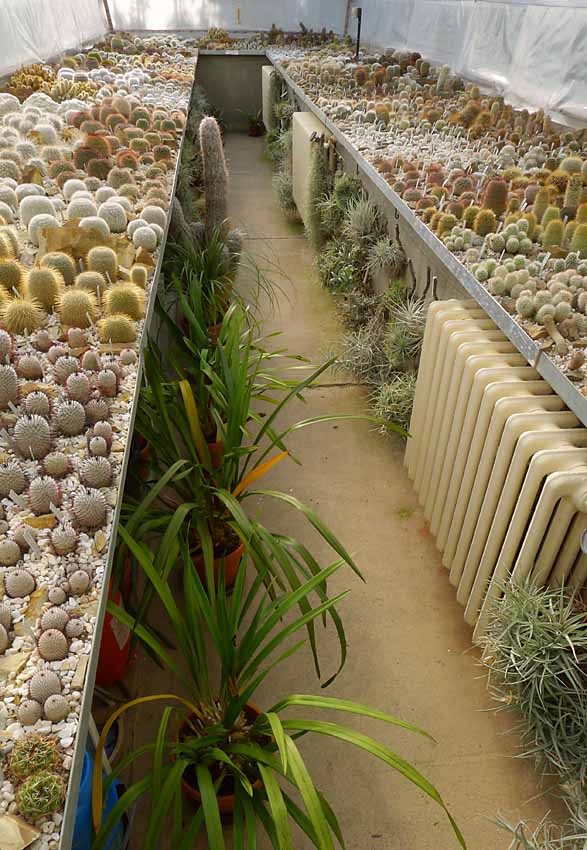 Přezimování kaktusů je nejlepší ve skleníku kde mají světlo i optimální podmínky. Aby náklady na topení v době zimní byly ještě únosné, vykládám celý skleník vrstvou igelitové fólie. V zimním období přemisťuji do předsíně i temperované a chladnomilné orchideje. I ulička skleníku je v té době zaplněná rostlinami, které jsou přes léto v zahradě. Přezimovat se rostliny dají i v bytě na okně, nebo i ve tmě ve sklepě. Většina z nich to toleruje a dokonce i pěkně kvetou. Optimální to ale není.