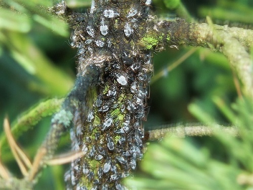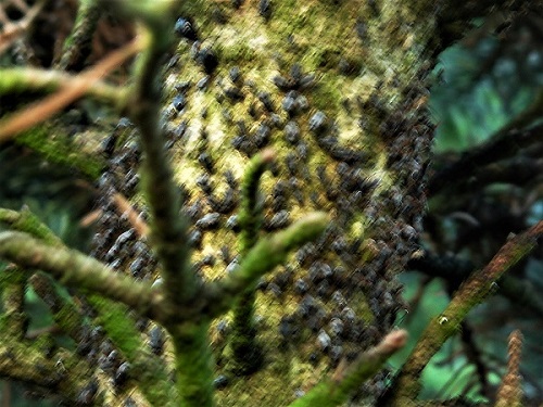 Tak letos je to nějaká pohroma či co. Na jehličnanech se mi nejprve objevily housenky Bekyně mniška a to po stovkách, takže strom je dost poškozený a uvidíme zda se vzpamatuje a včera podvečer na dalším stříbrňáku tohle nadělení. Vypadá to jako mšice velikosti jak dva mravenci dohromady a klidně to propichuje kůru na kmeni i větvích což je pro normální mšici oříšek. Hledal jsem na netu a našel jsem tam mšici smrkovou, která právě napadá hlavně ozdobné stříbrné pichlavé smrky ale na fotech jsem viděl že jsou napadeny jehlice ale tyhle porvory klidně sály větve a kmen o průměru 10cm, takže si nejsem jist, zda to není něco jiného. Naštěstí jak na mnišku tak ny tyhle potvory zabral Decis.