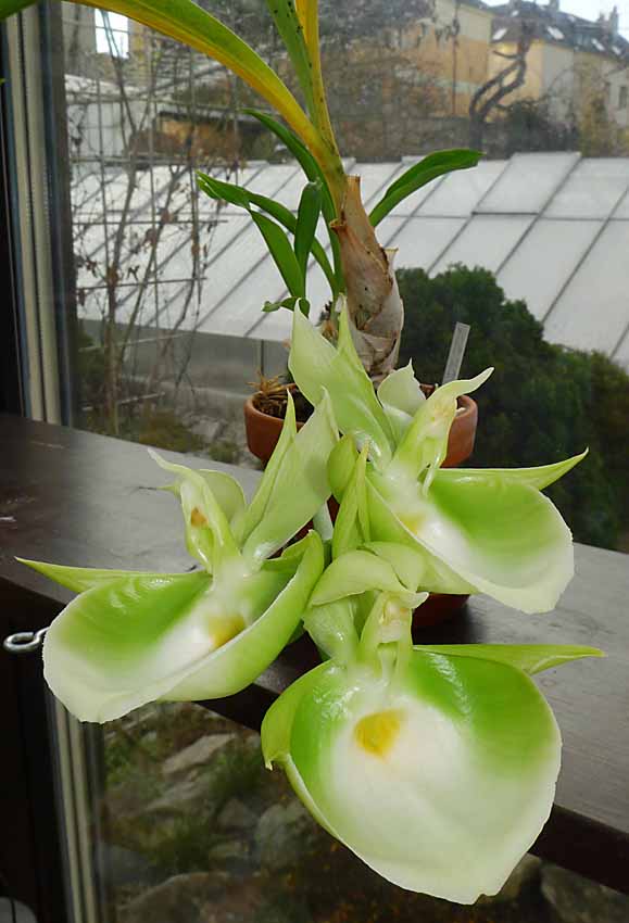 Tak mám zase jedno story o koupě orchideje. Nedávno mi kvetlo Catasetum pileatum "Oro verde" od pokojovky.cz. Krásná kytka. Kdysi jsem si ale objednal malinkou rostlinu téhož Cataseta z Orchids-shop.eu. Nyní mi vykvetla a jak jsem dohledal tak jde o Catasetum pileatum "green-gold" -tedy opět něco jiného než jsem objednal. Ještě mám Catasetum pileatum v. imperiale které mi zatím nekvetlo. Mělo by kvést červeně, tak doufám, že nevykvete třeba bíle