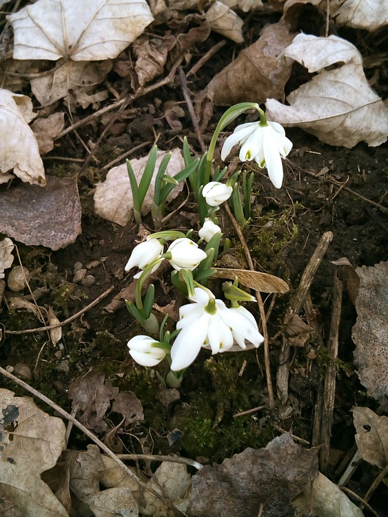 Dnes bolo nádherne a tak som vyrazil von. Na jednom mieste som celkom náhodou natrafil na snežienky. Náhodou preto, lebo v celom okolí nikde nič, iba tento jediný trs. Možno, že ostatné ešte len vylezú ...