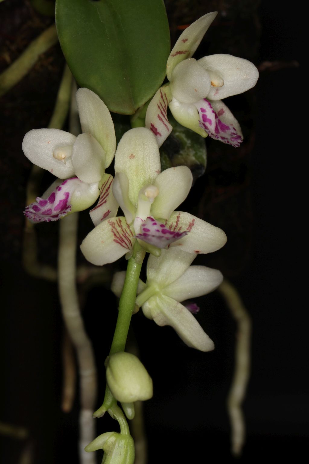 Kvetou tři menší kytky. Neofinetia falcata "Koka" tři roky nekvetla ač jsem ji koupil jako květuschopnou. Někdy musíme prostě vydržet